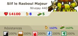 Commencez pas tuer les bestioles qui accompagnent le rasboul, à la limite laissez en une pour la capture. La technique consite à lui retirer des PA pour qu'il en gagne, vers 14-20 PA (oui je sais je suis precis) il lancera un sort "Holol" (qui va vous faire rire à n'en pas douter au moins pendant... 30s). Une fois qu'apparait les 900% dommages, il faudra tous taper dans le meme élement (pas neutre) vers le 3éme coup il va commencer à perdre des PV. Pour rajouter un peu de piment il invoque (heurement à distance) des gentilles bestioles qui soignent jusqu'a 12 000 PV, tuez les ou maintenez les à distance/ à 0 PA, sinon tout est à refaire. Avec un peu de patience vous viendrez à bout de ce Rasboul |