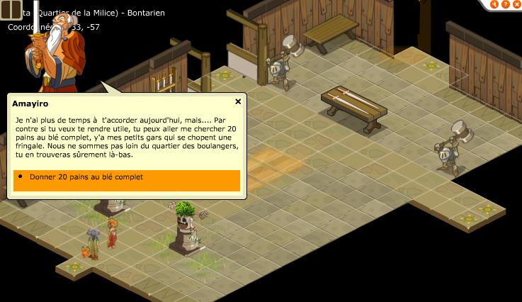 Allez acheter 20 pains au blé complet puis ramenez les à Amayiro, il vous donnera 2000 kamas en échange. |